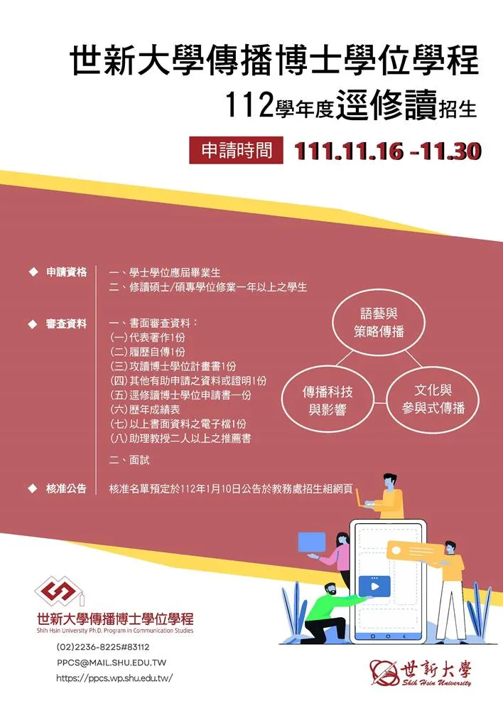 114學年度博士班招生資訊公告,歡迎報考 2024-09-20 本校博士班開始招生,提供優渥獎學金與頂尖研究環境,歡迎有志於學術研究的菁英加入。 本頁為新聞頁面骨架。待正式內文完成後,請替換此段落為完整報導內容與圖片。 返回新聞列表